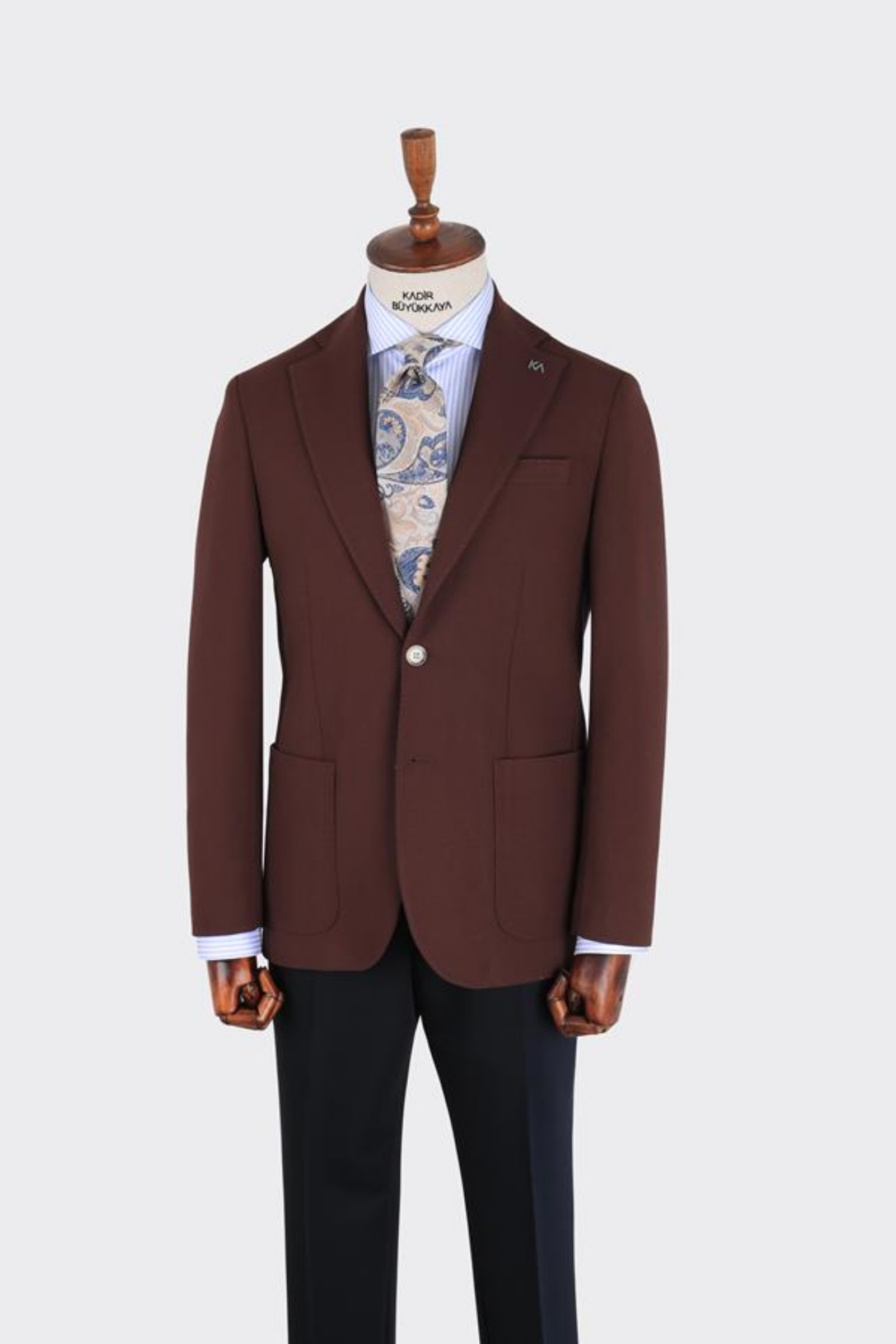 İki düğme ceket 6 drop ve mono yaka modelinde olup , nefes alabilir ve dört mevsim kullanıma uygundur. Ürün içeriği tek ceketten oluşur. Çift düğme, napolitan omuz ve çift yırtmaç modeli uygulanmıştır. Logomuz olan KA yaka rozeti bulunmaktadır, istenildiğinde çıkartılabilir. Hem klasik hem spor kombinler için tercih edilebilir.