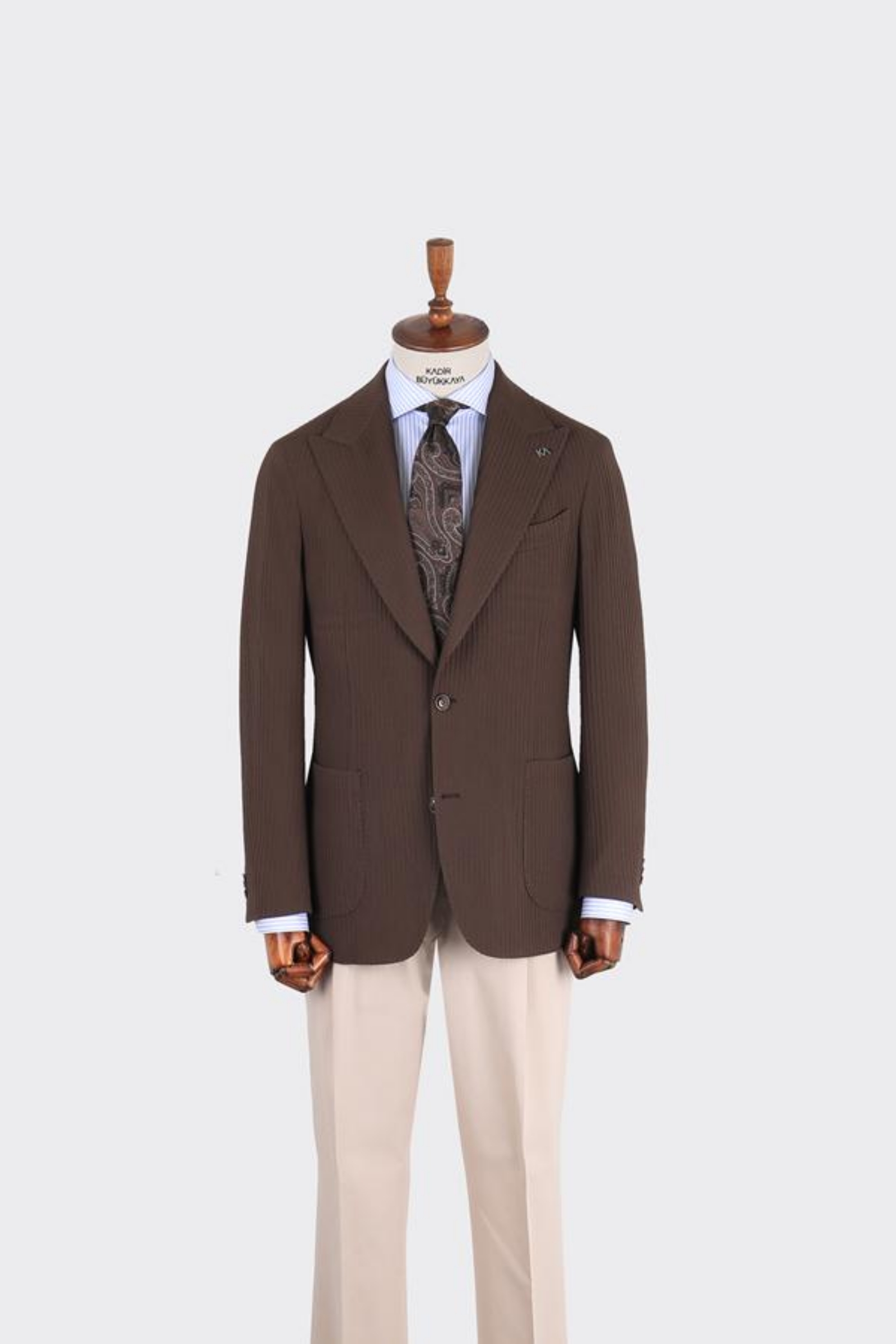İki düğme ceket 6 drop ve kırlangıç yaka modelinde olup , nefes alabilir ve dört mevsim kullanıma uygundur. Ürün içeriği tek ceketten oluşur. Çift düğme, napolitan omuz ve çift yırtmaç modeli uygulanmıştır. Logomuz olan KA yaka rozeti bulunmaktadır, istenildiğinde çıkartılabilir. Hem klasik hem spor kombinler için tercih edilebilir.