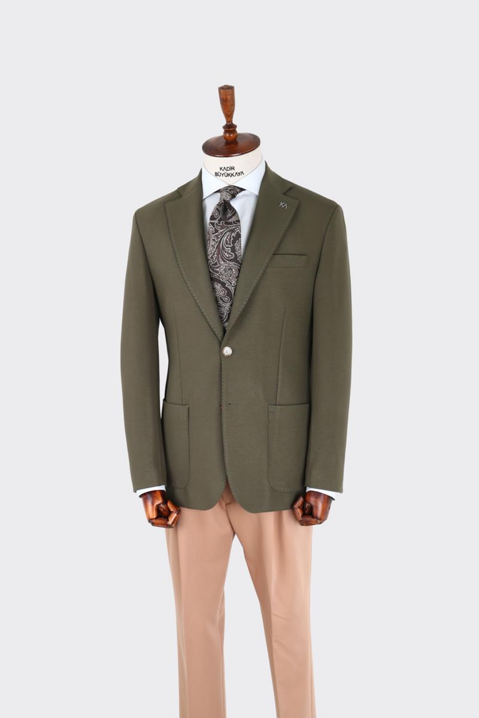 İki düğme ceket 6 drop ve mono yaka modelinde olup , nefes alabilir ve dört mevsim kullanıma uygundur. Ürün içeriği tek ceketten oluşur. Çift düğme, napolitan omuz ve çift yırtmaç modeli uygulanmıştır. Logomuz olan KA yaka rozeti bulunmaktadır, istenildiğinde çıkartılabilir. Hem klasik hem spor kombinler için tercih edilebilir.