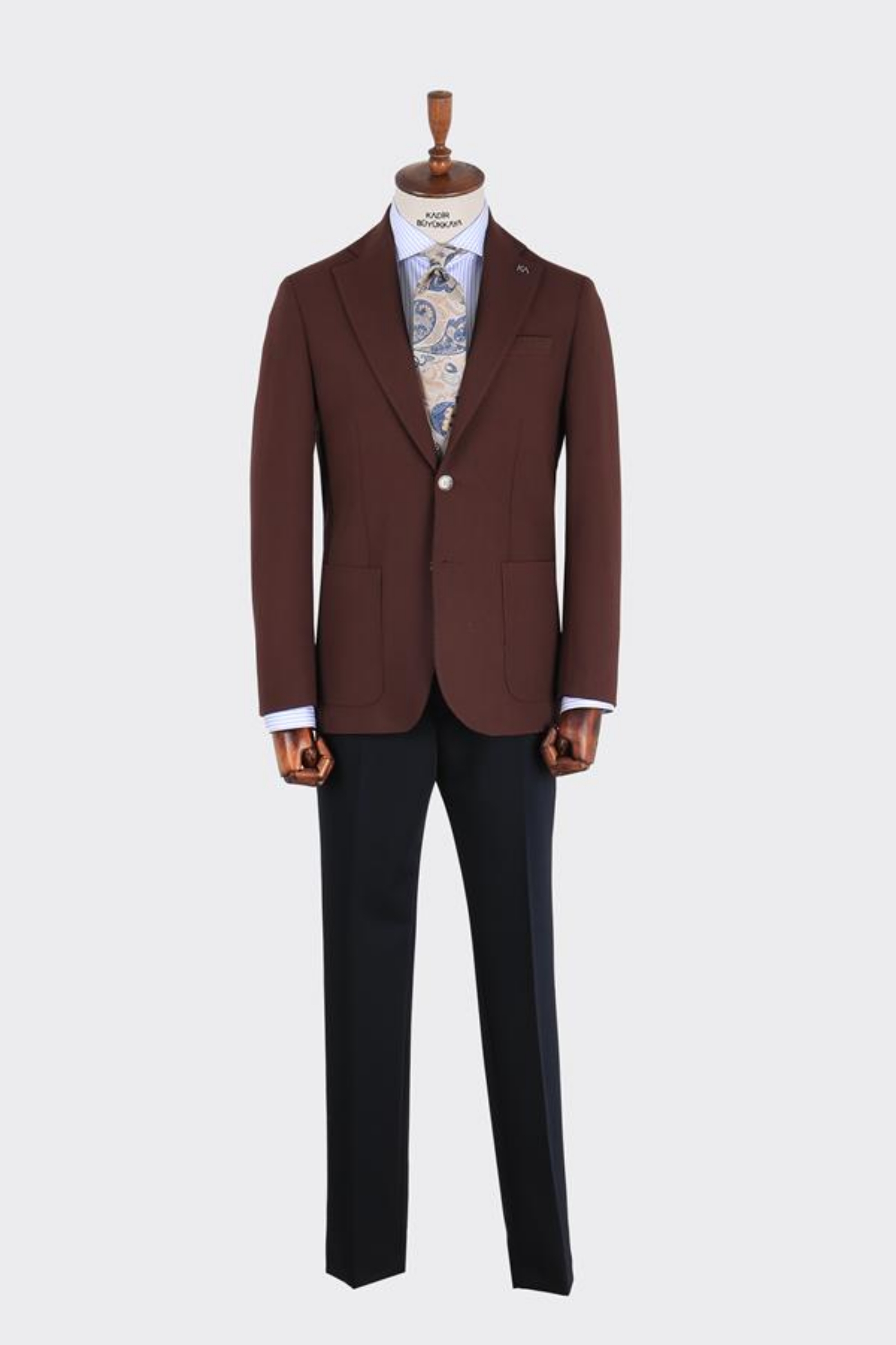 İki düğme ceket 6 drop ve mono yaka modelinde olup , nefes alabilir ve dört mevsim kullanıma uygundur. Ürün içeriği tek ceketten oluşur. Çift düğme, napolitan omuz ve çift yırtmaç modeli uygulanmıştır. Logomuz olan KA yaka rozeti bulunmaktadır, istenildiğinde çıkartılabilir. Hem klasik hem spor kombinler için tercih edilebilir.