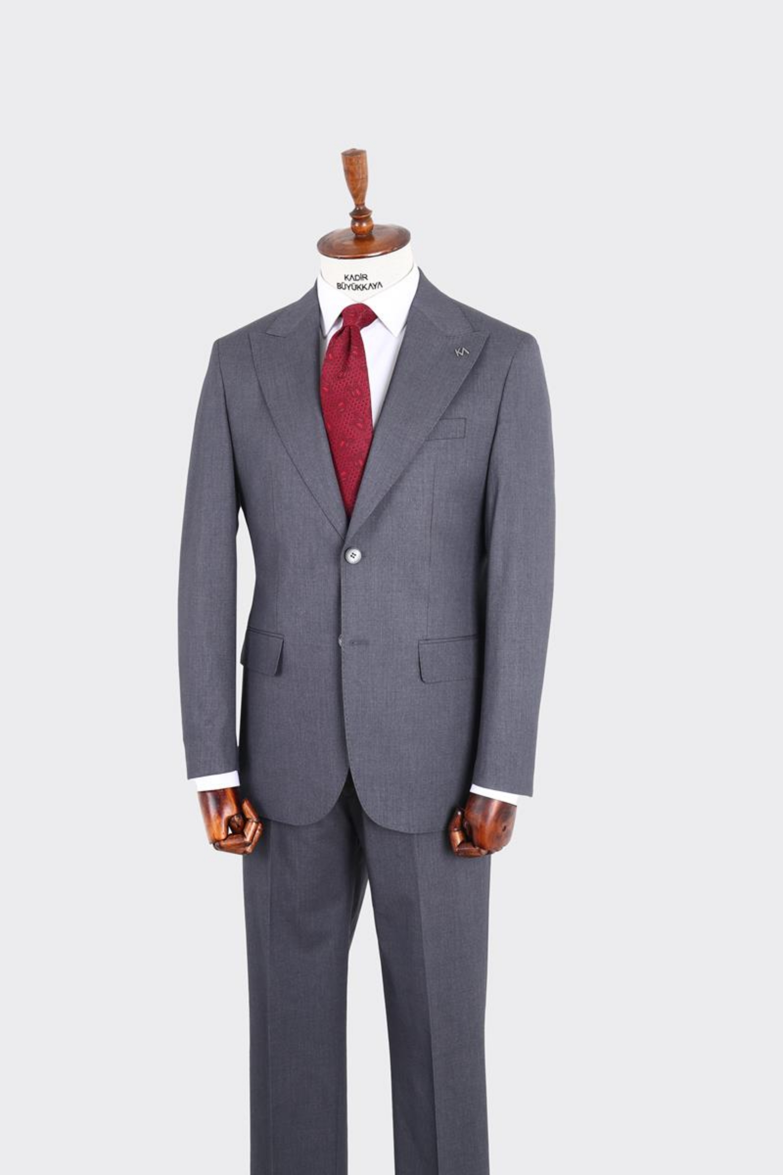 İki düğme takım elbise 6 drop ve kırlangıç yaka modelinde olup , nefes alabilir ve dört mevsim kullanıma uygundur. Ürün içeriği ceket ve pantolondan oluşur. Çift düğme ve çift yırtmaç modeli uygulanmıştır. Logomuz olan KA yaka rozeti bulunmaktadır, istenildiğinde çıkartılabilmektedir. Hem klasik hem spor takım elbise ve kombinler için tercih edilebilir.