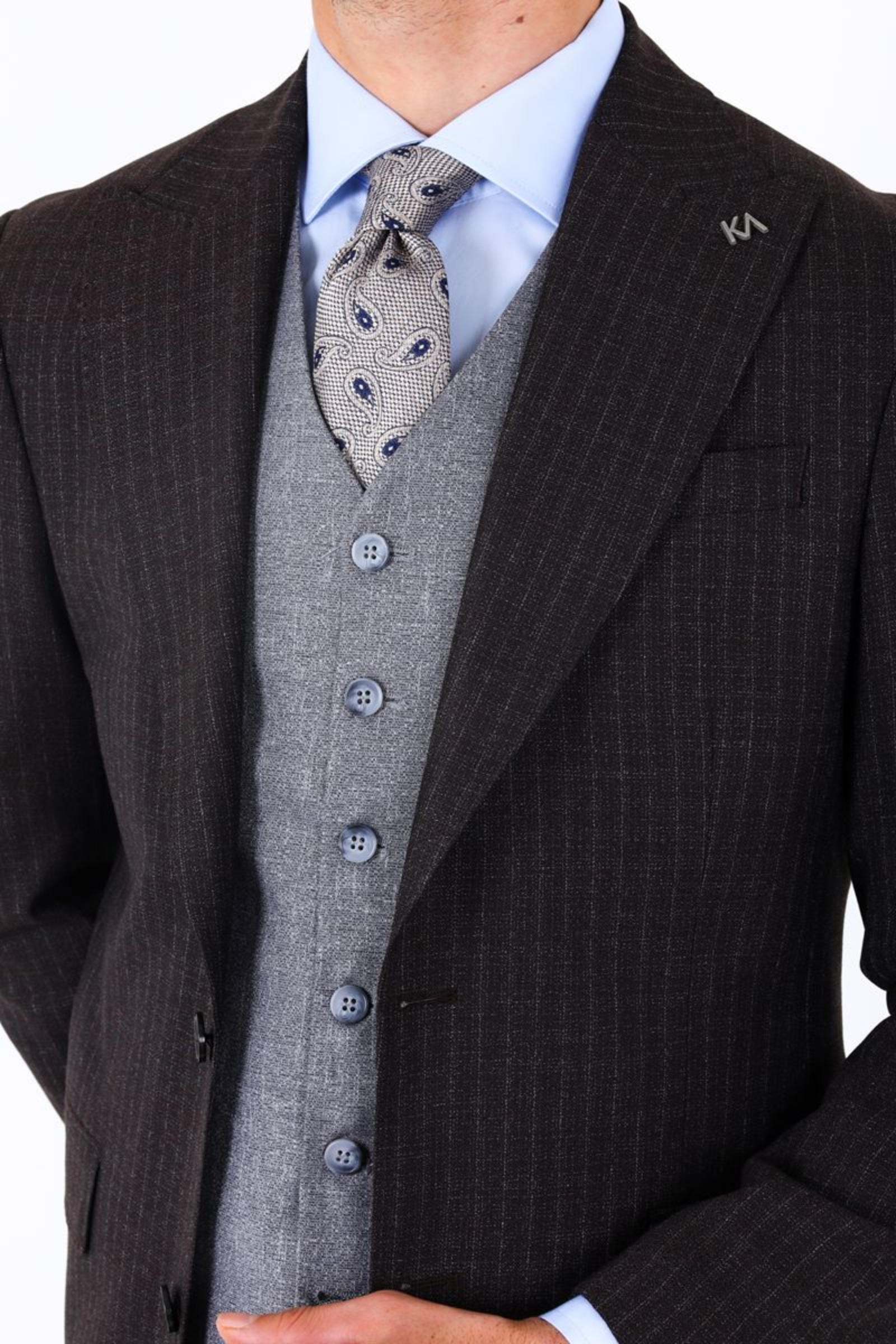 Yelekli Takım Elbise - Kahverengi